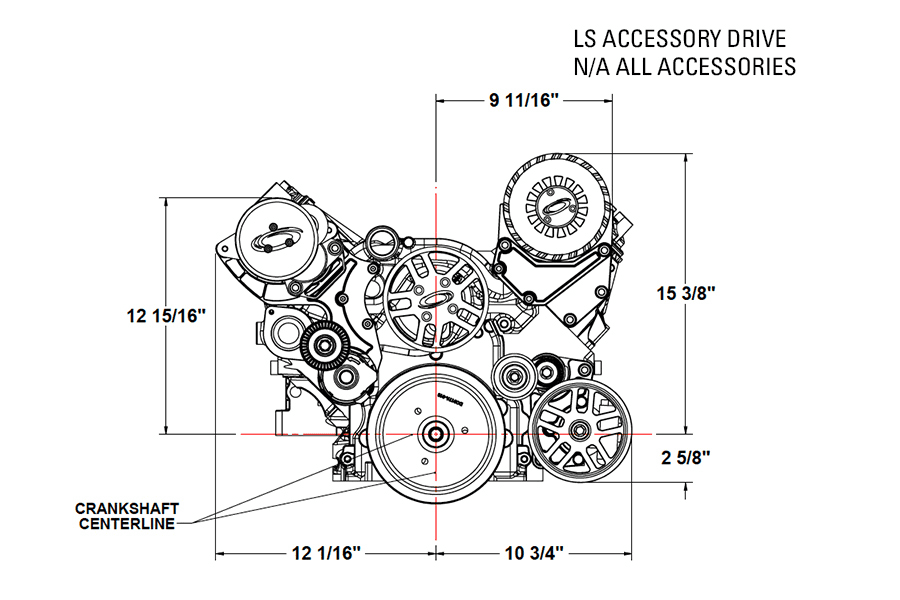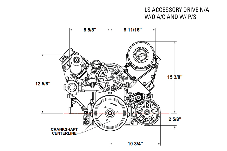 Pictures 17-19 are showing the LS accessory drive as a naturally aspirated system with Power Steering & Without AC