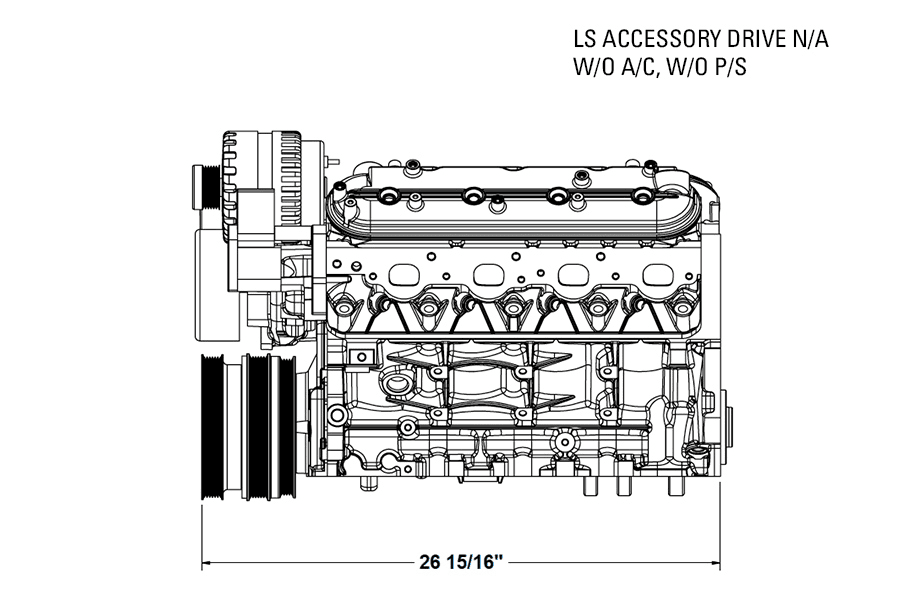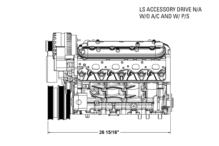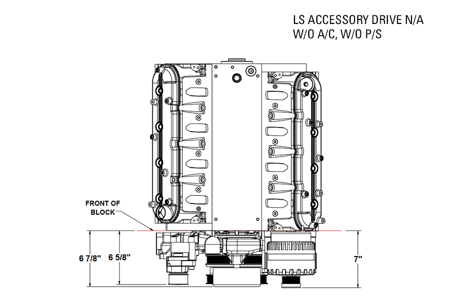 Pictures 20-22 are showing the LS accessory drive as a naturally aspirated system without Power Steering & Without AC