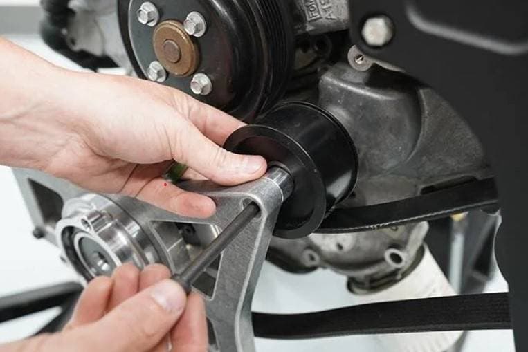 It does require you run an ATI damper 918047 and it also requires an 8- or 10-rib Stage 2 drive system. The crank support clears all stock accessories but it doesn't clear the stock swaybar—if you?re running skinny front drag tires, you don?t need the sway bar anyway. The brackets and Bolt locators are all doweled, so once installed the ProCharger crank snout upgrade solidly holds your crankshaft in place and eliminates the movement that can cause breakage.