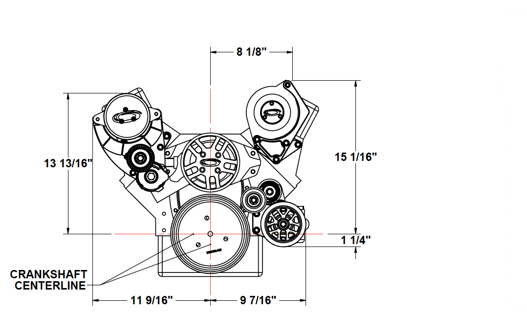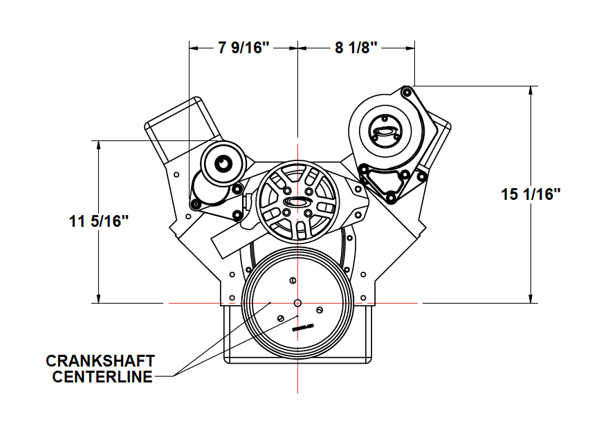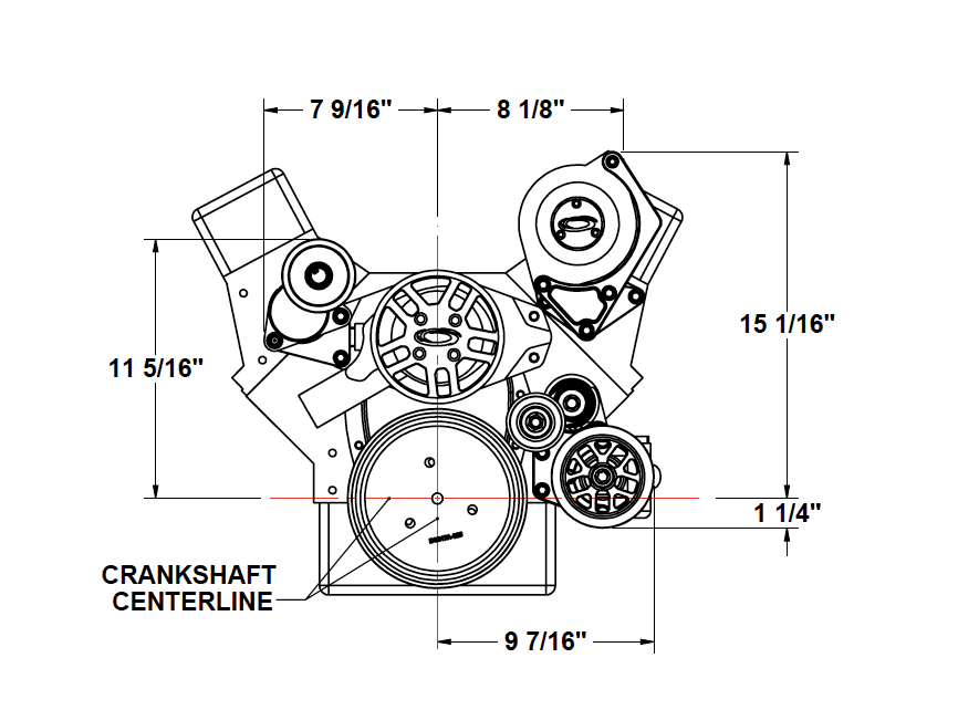 Kit will fit any SBC block, This system comes with Crank pulley, Alternator bracket and has the option of adding ProCharger supercharger bracket & supercharger, Power steering bracket & A/C Bracket