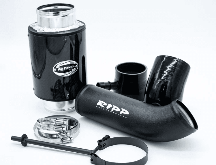 RIPP, the only cold air intake system compatible with a snorkel setup. This versatile kit can be configured in multiple ways to suit your build and driving needs. If you’re already giving up horsepower to a snorkel, don’t let your factory airbox rob even more! No panel filter can match this system’s airflow. The RIPP intake frees up space under the hood and adds an 6 additional rear-wheel horsepower. Its unique inverted air filter design means it operates “backward,” exposing more surface area to incoming air. The carbon fiber enclosure helps contain and direct the intake charge, resulting in improved throttle response and smoother performance at lower RPMs..