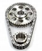 All Red Label timing sets are produced using billet steel for both the crank and camshaft sprockets. The grades of materials used are mentioned further down this page. Gold Label sets are nitride hardened and include a one-piece Torrington and Iwis chain. Red label sets come with 7 or 9 crankshaft keyway sprockets depending on crankshaft diameter. The smaller shafts tend to be best suited to 7 crank keyways, although engines like Small Block Chevs etc come with 9 so it allows more adjustment for dialing in the cam. Crankshaft sprocket keyways are in 2 degree increments always unless otherwise noted. The relationship from crank keyway to camshaft sprocket timing is 2:1 meaning that the amount of advance or retard at the camshaft is in one degree increments, IE 1, 2, 3 or 4 degrees. Multiple keyways are a solid fixture and do not tend to move or work loose like offset dowels, thus providing a positive locking of the cam timing to whatever position is desired. Rollmaster timing sets are light weight and stronger than any other timing set available due to the weight savings of billet steel and CNC machinery. No additional machining is required to fit these sets or the need for offset bushings or drilling of cam gears. All Red Label timing sets come standard with Rollmasters own premium grade full roller timing chain. Every small and big block Chevy comes standard with a brass thrust washer and is available with an optional one-piece Torrington thrust bearing. You will find Rollmaster has included brass thrust washers to most of our range including Ford for increased performance and reliability. Where possible our one-piece Torrington thrust bearings can be applied to most of our range of timing sets and listings are noted accordingly in our catalogue. Notice our Nitrate hardened timing sets and those fitted with one-piece Torringtons, compared to the standard billet steel sets. All Timing Chain Sets are made from billet steel, have 9 Keyways (unless otherwise stated) and have a heat treated crank sprocket. Red Series: standard billet steel set with induction hardened crank gear Gold Series: premium billet steel set with all sprockets nitrided for better durability and longer life. Line Bore Kits available in .002", .005", .008" and .010". When ordering Line Bore Kits mark order with LB2, LB5, LB8, LB10 after the part number.