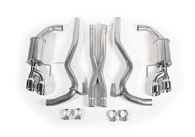 This kit doesn't just improve function; it adds flair with its polished 304 stainless steel tips. Included in the package are a mandrel-bent x-pipe, mid-pipes, and dual high-flow mufflers, all contributing to an enriched sound profile and elevated performance characteristics for your Mustang's V8 engine.