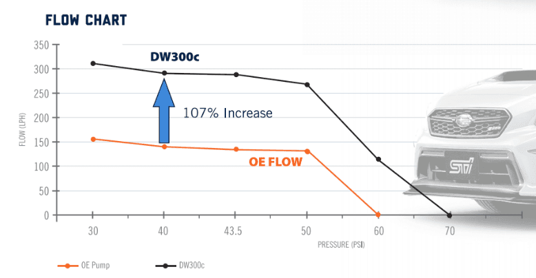 A fuel injected internal combustion engine is a dynamic system. Fuel flow requirements vary greatly by rpm and load. However, one law remains universal: forced induction applications require more flow at higher pressures. Knowing this fact, DW has engineered their fuel pumps to maximize flow at higher pressures. By designing the armature for torque bias, delaying pressure relief activation, and maximizing impeller efficiency, DW has created a line of pumps with an extremely flat flow curve. Higher flow at higher pressure delivers the fuel your engine demands.
