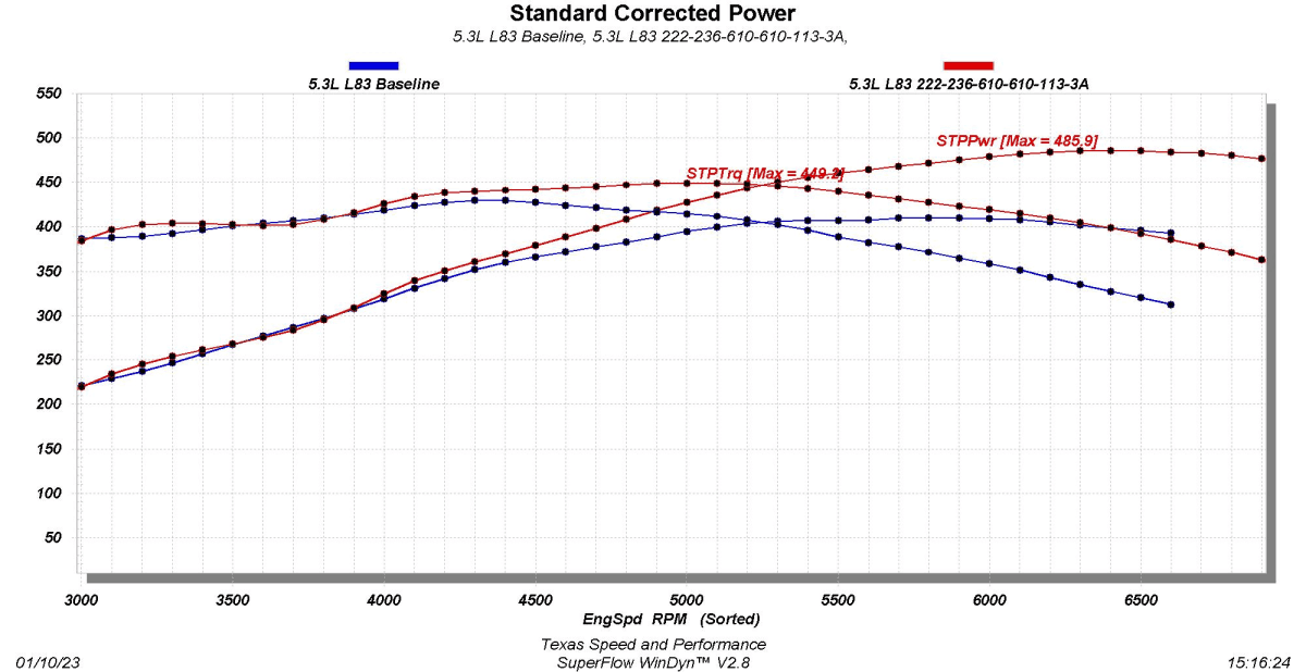 The Texas Speed & Performance L83V2-Stg3 camshaft is our newest version of our already popular L83 camshaft lineup. We were able to redesign the lobes for less lift and more power than our previous version. Not only will the new version be easier on the valve springs but the valvetrain noise will be much quieter too! This camshaft is a great choice for the enthusiast looking for maximum horsepower and a Hard Chop! Due to the nature of this cam it will require an aftermarket torque converter. It does not retain the factory AFM/DOD functionality that deactivates cylinders, so a DOD/AFM delete kit will be needed.