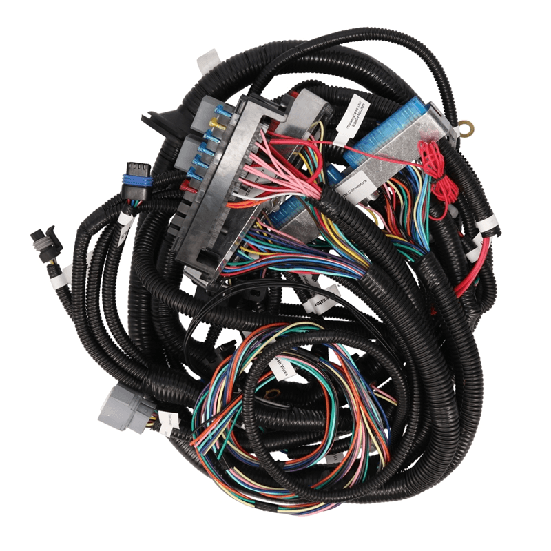 INCLUDED CONNECTORS: Fuse/Relay Box, Fuel Pump Control, Fan Controls, Check Engine Light, IAC and TPS, MAF Sensor, MAP Sensor, Engine Coolant Temp Sensor, Alternator Control, (2) Upstream Oxygen Sensors, Crankshaft Position, Camshaft Position, Fuel Injectors, Coil Packs, Manual or Automatic Transmission Control, Knock Sensors