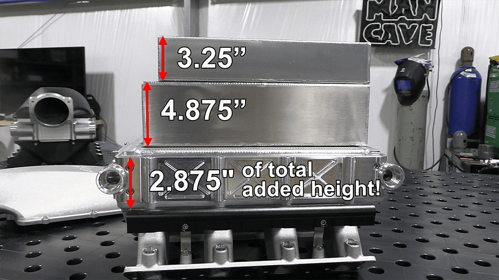 10.36" at tallest point. Intercooler adds 4.96".
