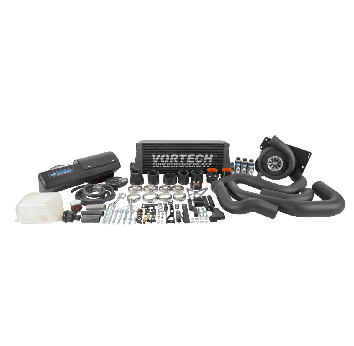 These supercharger kits are are the most complete available, including everything needed for installation. This includes all mounting brackets for the blower, pullies, belts, intercooler, all the tubing, piping, fittings and clamps and even oil for the self contained lubricating system. You do not need to make any major modifications or purchase special tools or other parts. Many customers install in their garage or driveway over a weekend.