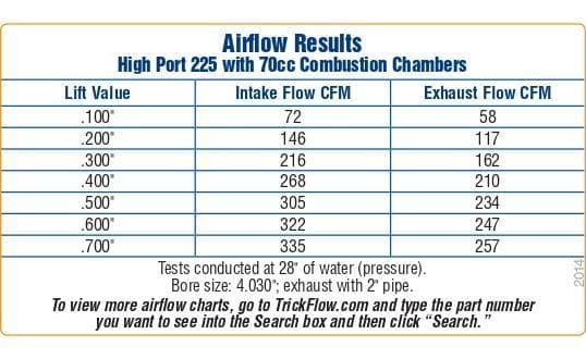 Other features include fully CNC-profiled combustion chambers with port-to-valve seat blending (bowl blending) and raised valve cover rails. Trick Flow® High Port® 225 cylinder heads are available fully assembled or as bare castings.