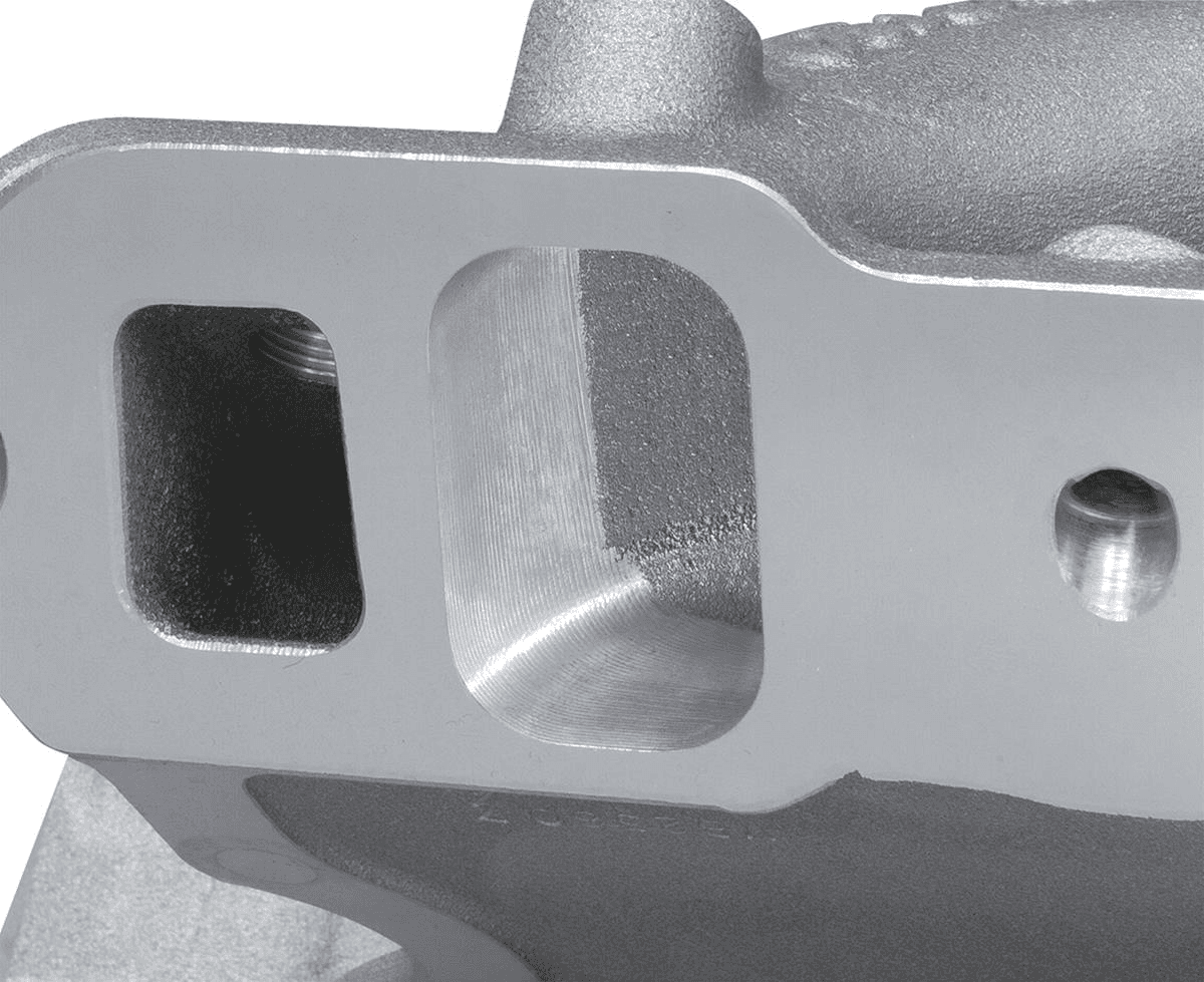 The A319 aluminum manifold's CNC Competition Ported runner treatment has been specially designed and machined with perfect port alignment on Twisted Wedge® 11R 227 cylinder heads. The high-flow, one-piece spider-type single plane design with raised plenum floor puts the powerband in the 3,500-7,500-plus RPM range. Integral bosses allow adding nitrous nozzles. Accepts Holley 4150-style square bore carburetors.