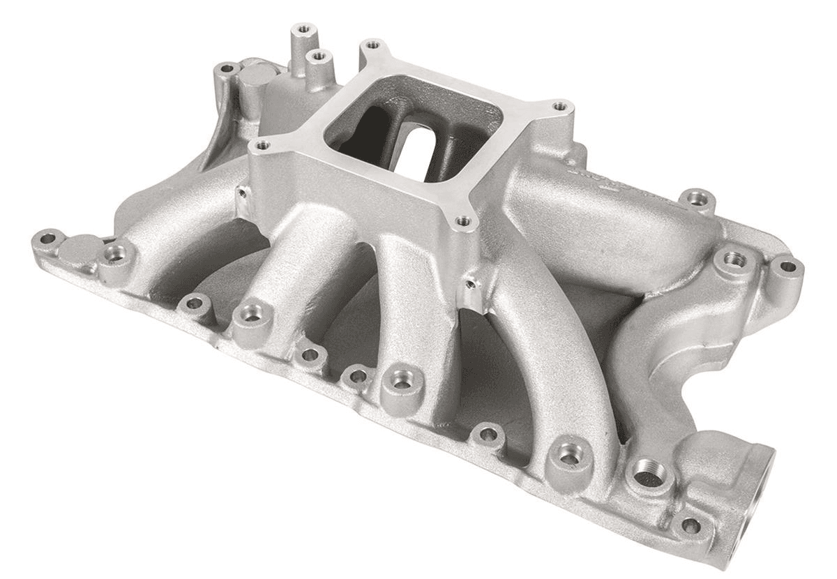 The A319 aluminum manifold's CNC Competition Ported runner treatment has been specially designed and machined with perfect port alignment on Twisted Wedge® 11R 227 cylinder heads. The high-flow, one-piece spider-type single plane design with raised plenum floor puts the powerband in the 3,500-7,500-plus RPM range. Custom-machined fuel injection nozzle ports accept standard Bosch and Siemens-type fuel injectors.
