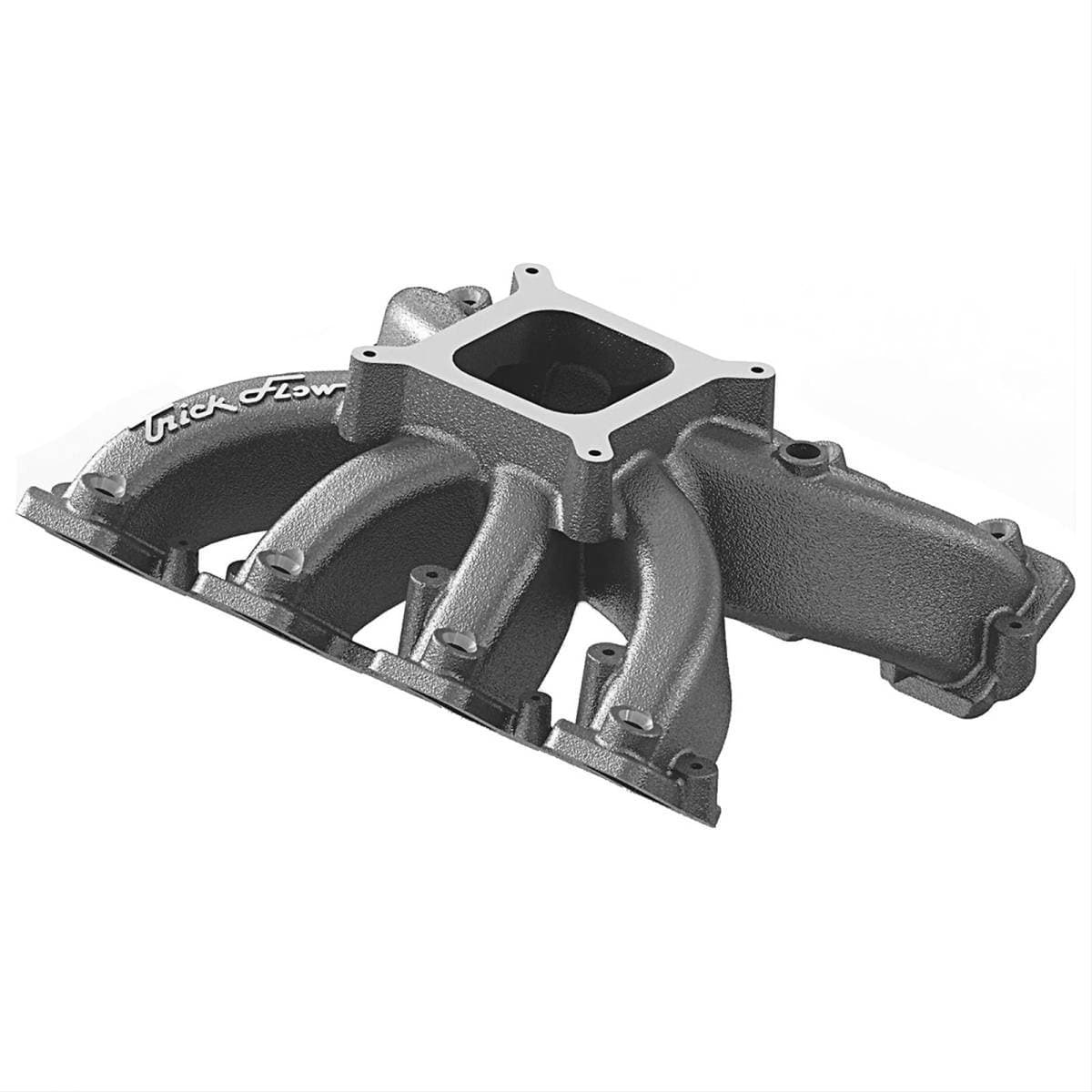 The R-Series intake manifolds by Trick Flow are computer-engineered to deliver carbureted-style aspiration to GM’s LS3 engine. Important features include A319 aluminum construction, a one-piece spider-type design, high-flow individual runners combined with a raised plenum floor, custom machining for fuel injection nozzles, and extra material for custom porting. These manifolds are intended for heavily modified engines that operate in the 3,500-7,500 plus RPM powerband and will accept standard Bosch and Siemens type fuel injectors. Overall height to the mounting pads is 6.285 in.
