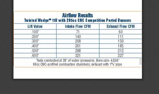Notes: Competition ported fully CNC machined, non-emissions heads. Trick Flow twisted Wedge 11R heads are machined for 1/2 in. head bolts; for customers with blocks that are machined for 7/16 in. head bolts, the use of TFS-51400419 head bolt bushings is required.