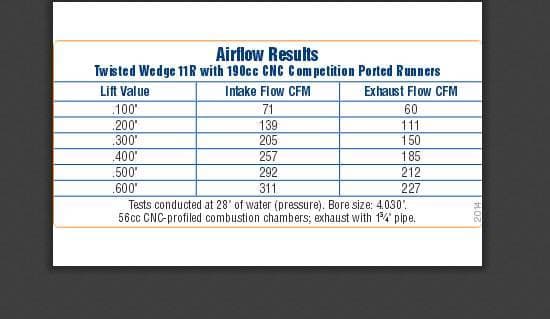 Trick Flow’s new Twisted Wedge® 11R 190 cylinder heads feature 11° intake and 13° exhaust valve angles and a restructured combustion chamber arrangement for more airflow and performance potential. The new high velocity, race-inspired runners have been optimized for today’s popular bore and stroke combinations. Premium certified materials and components, along with the finest CNC tooling, are used to ensure uncompromising quality and durability, dimensional accuracy, and balanced flow from port-to-port. Fully machined castings increase strength and project a great-looking billet-like appearance.
