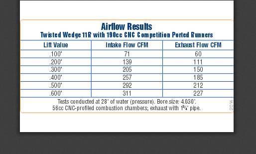 Trick Flow’s new Twisted Wedge® 11R 190 cylinder heads feature 11° intake and 13° exhaust valve angles and a restructured combustion chamber arrangement for more airflow and performance potential. The new high velocity, race-inspired runners have been optimized for today’s popular bore and stroke combinations. Premium certified materials and components, along with the finest CNC tooling, are used to ensure uncompromising quality and durability, dimensional accuracy, and balanced flow from port-to-port. Fully machined castings increase strength and project a great-looking billet-like appearance.