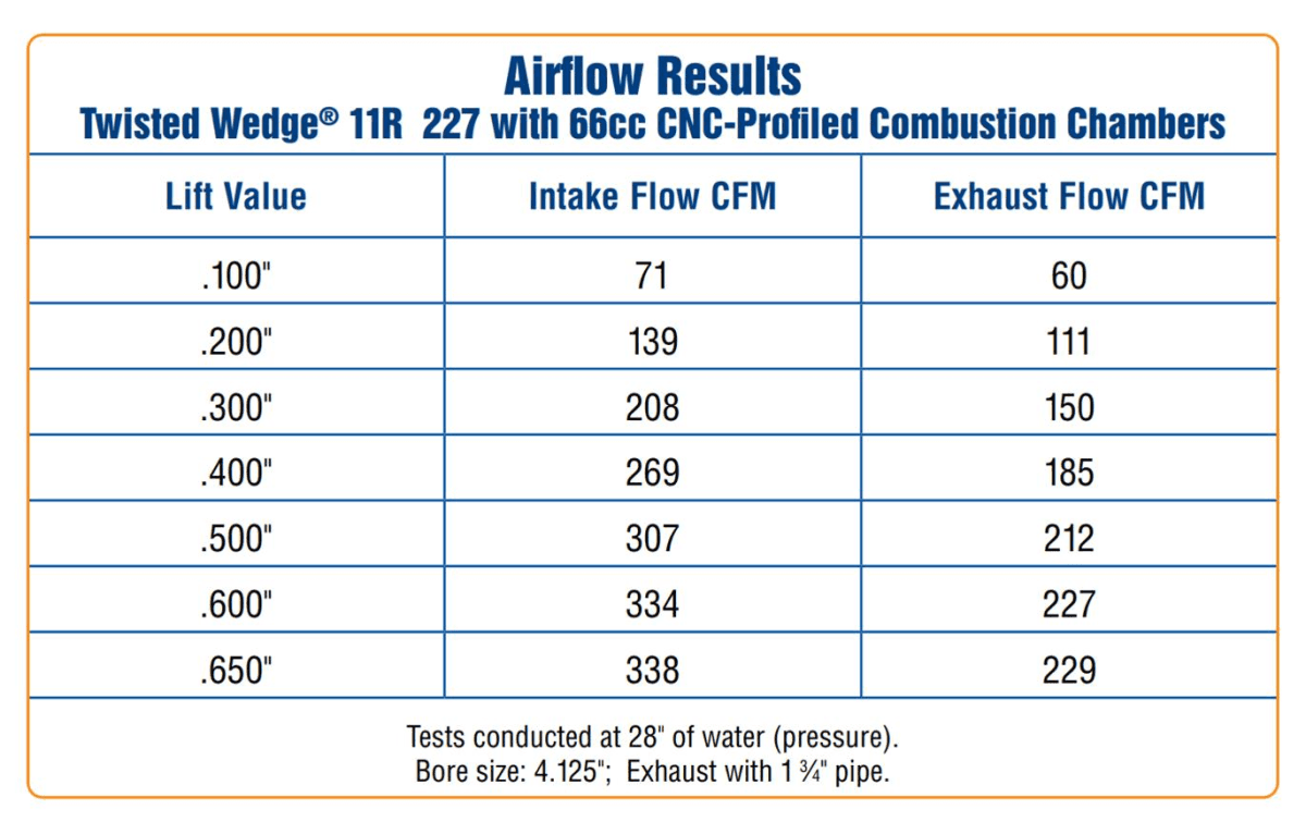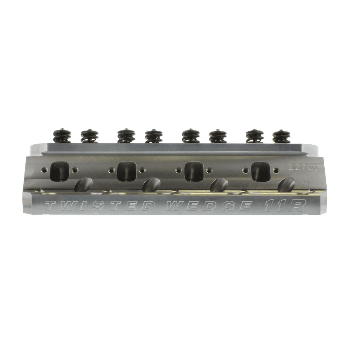 Competition ported fully CNC machined, non-emissions heads. Trick Flow twisted Wedge 11R heads are machined for 1/2 in. head bolts; for customers with blocks that are machined for 7/16 in. head bolts, the use of TFS-51400419 head bolt bushings is required. Set-up for hydraulic roller cam shaft only. They are compatible with stock pistons with lower lift cams plus all Twisted Wedge® specific pistons with cams up to .650-inches of valve lift