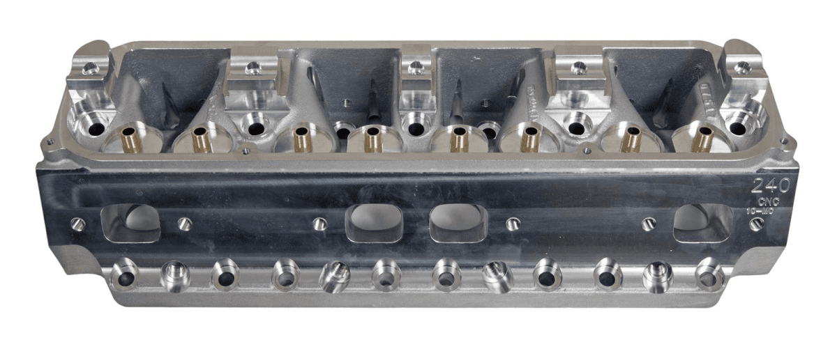 Other advantages of PowerPort 240 heads over stock heads include clearance for 3/8" pushrods, ductile iron valve seats, bronze alloy valve guides, and multi-angle valve seat machining performed on precision Serdi® equipment. Assembled cylinder heads come with premium 11/32" stainless steel valves, Trick Flow by PAC Racing valve springs, chromoly and titanium retainer options, and 7° or 10° steel valve stem locks.