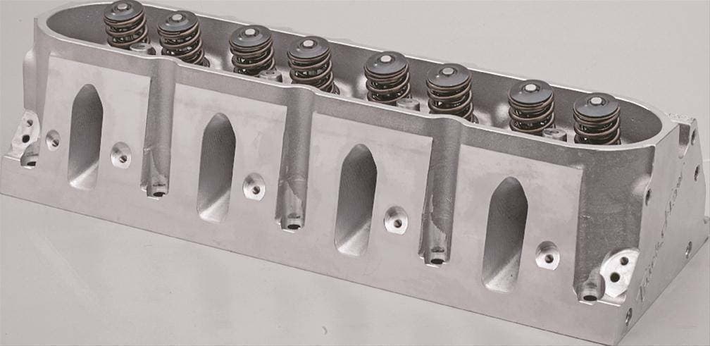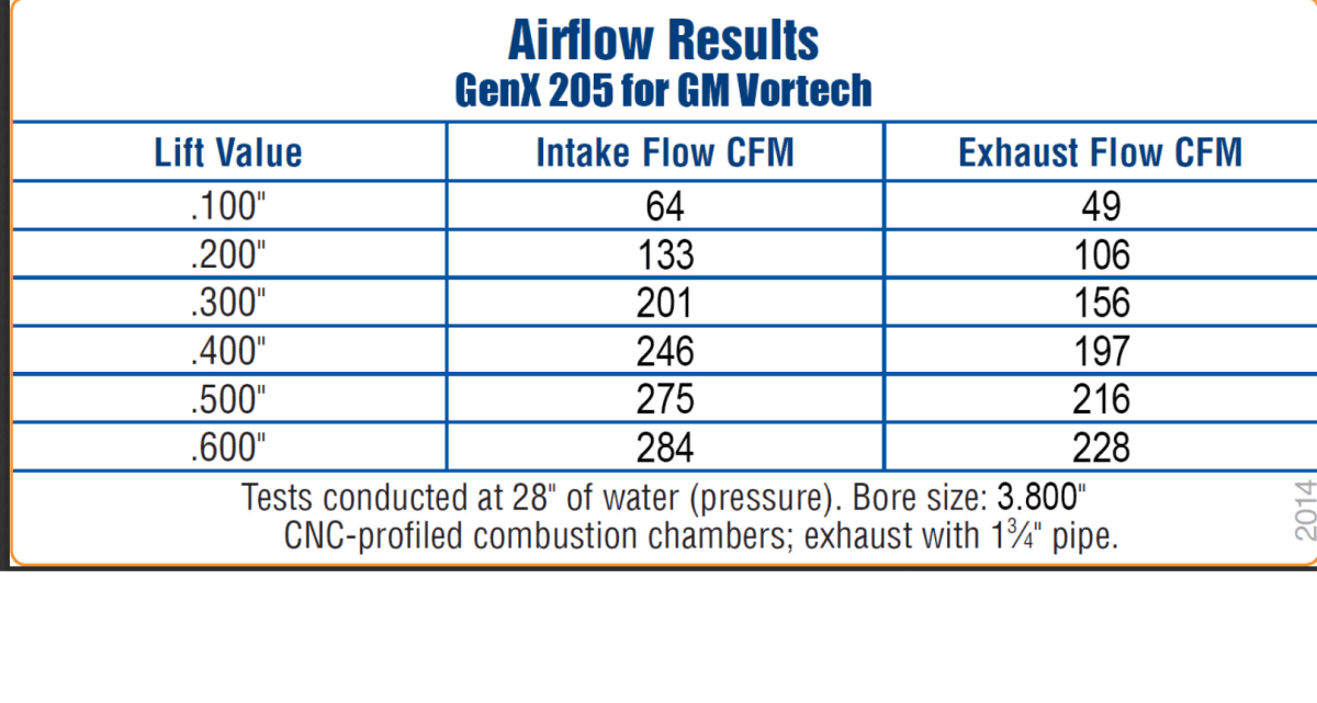 Manufacturer's Part Number: TFS-30510001-C00 Part Type: Cylinder Heads Product Line: Trick Flow® GenX® 205 Cylinder Heads for GM LS 4.8L/5.3L/5.7L (Vortec) Cylinder Head Style: Assembled Cylinder Head Material: Aluminum Intake Valve Diameter (in): 2.000 in. Cylinder Head Finish: Natural Combustion Chamber Volume (cc): 58 CNC-Machined Combustion Chamber: Yes Intake Runner Volume (cc): 205cc Exhaust Runner Volume (cc): 80cc CNC-Machined Intake Runner: Yes CNC-Machined Exhaust Runner: Yes Combustion Chamber Style: Heart Intake Port Shape: Cathedral Intake Port Location: Standard Exhaust Port Shape: Oval Exhaust Port Location: Standard Spark Plug Style: Angle Intake Valves Included: Yes Exhaust Valves Included: Yes Exhaust Valve Diameter (in): 1.575 in. Valve Springs Included: Yes Outside Diameter of Outer Spring (in): 1.300 in. Damper Spring Included: No Number of Springs Per Valve: Dual Retainers Included: Yes Retainer Material: Chromoly steel Locks Included: Yes Lock Style: 7 degree Valve Stem Seals Included: Yes Rocker Arm Studs Included: No Rocker Arms Included: No Rocker Arm Nuts Included: No Guideplates Included: No Valve Cover Mounting Style: Centerbolt Accessory Bolt Holes Drilled: Yes Intake Valve Angle: 13.50 Exhaust Valve Angle: 13.50 Valve Guides Included: Yes Valve Guide Material: Powdered metal Valve Seats Machined: Yes Valve Seat Machine Style: 3-angle Valve Seat Material: Ductile iron Steam Holes Drilled: No Oiling Style: Through pushrod Machined for O-Ring: No Heat Crossover: No Quantity: Sold individually. CARB EO Number: D-747 (pdf) To see a list of qualifying vehicles, enter CARB EO Number D-747 Emissions: California EO Approved