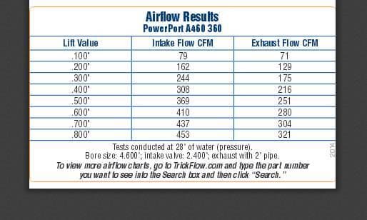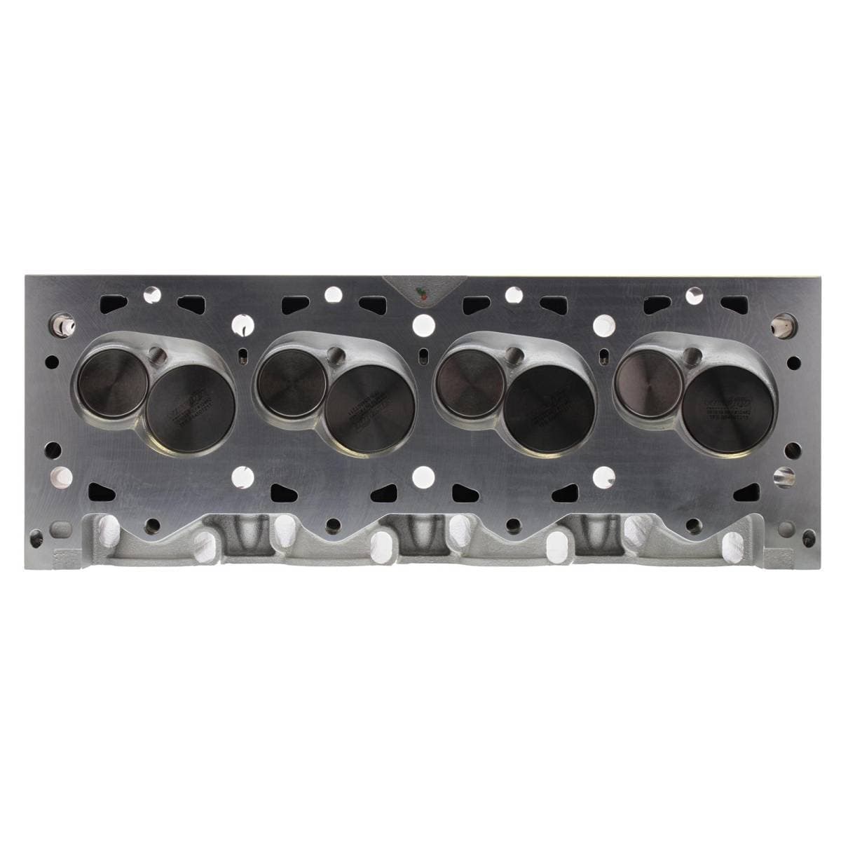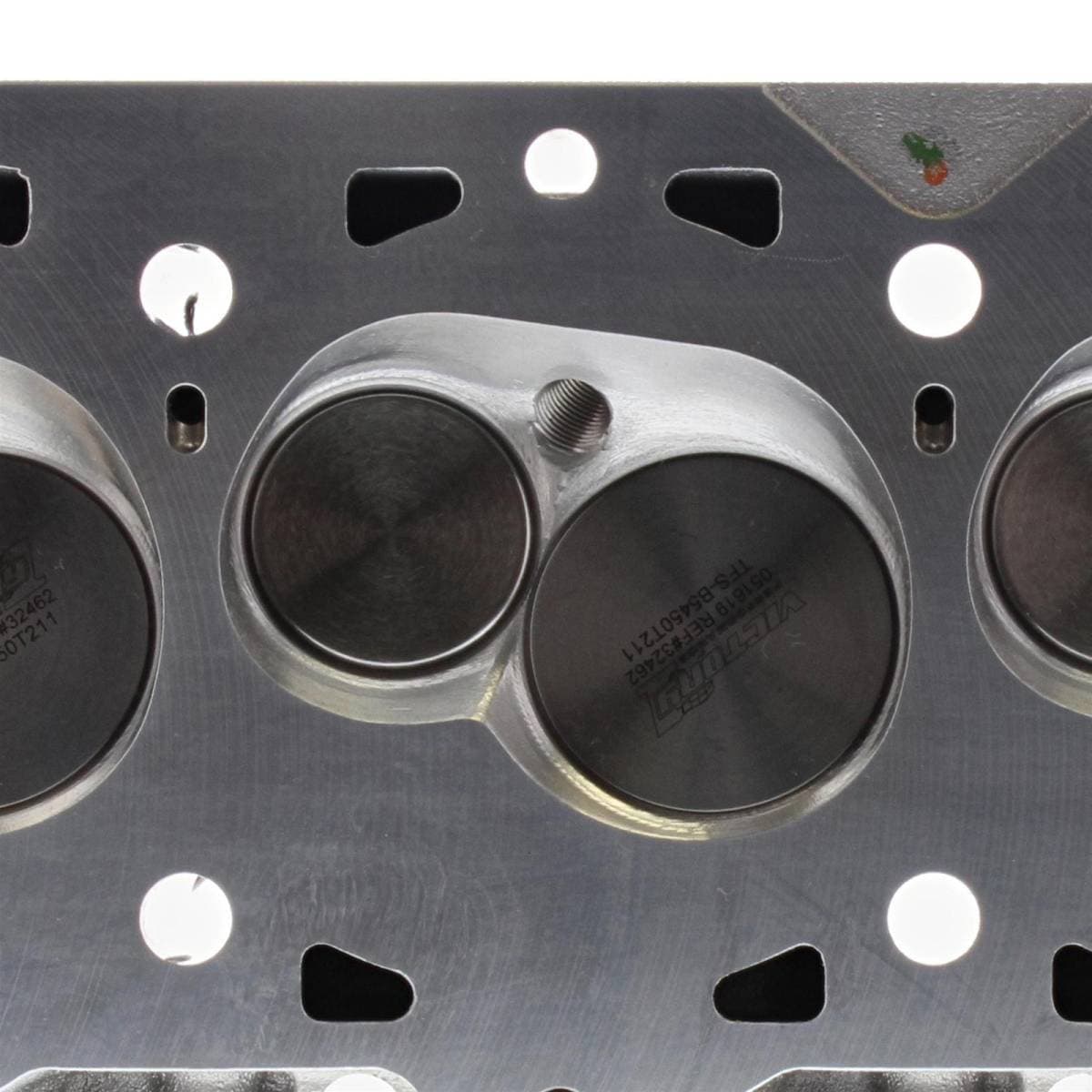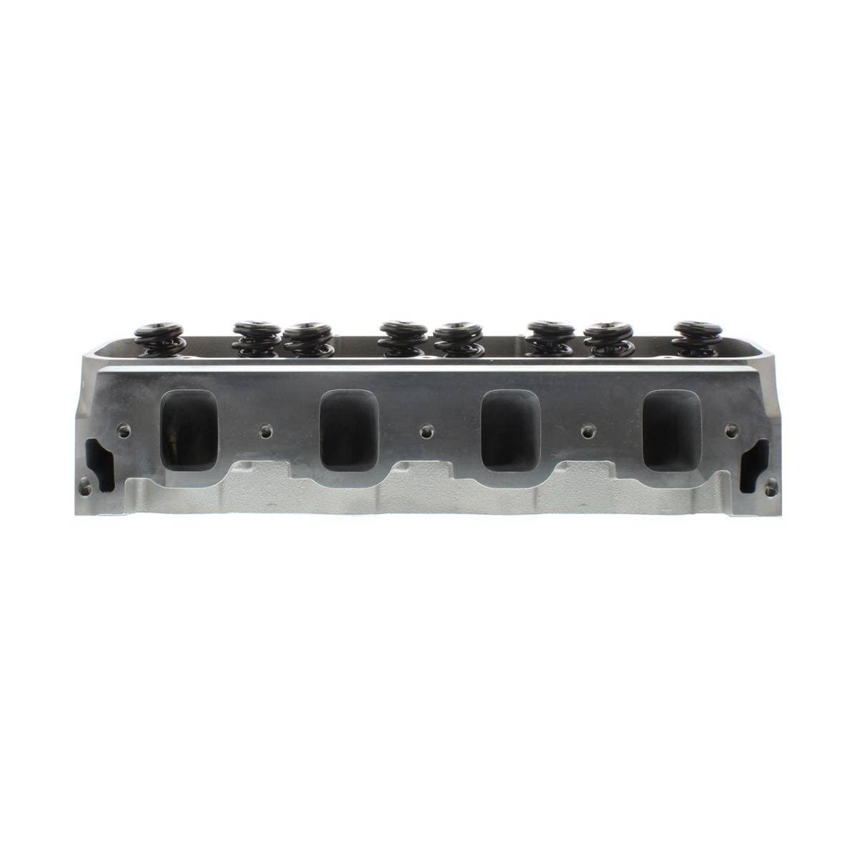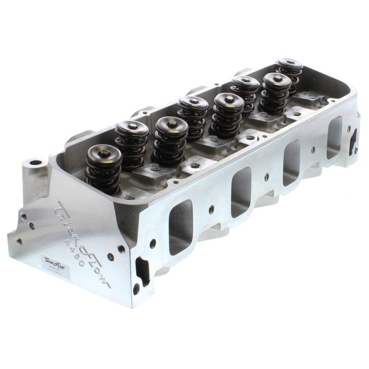 Intake valves are titanium. 18-bolt design cylinder heads are compatible with Ford Racing M-6010-A500 460 race block only. Requires an A460 specific intake manifold and custom-built header. Standard big block Chevy exhaust flange bolt pattern. Intake valves have 5/16 in. stems. Exhaust port is raised 1.500 in. over stock. Intake port is raised 1.000 in. over stock.
