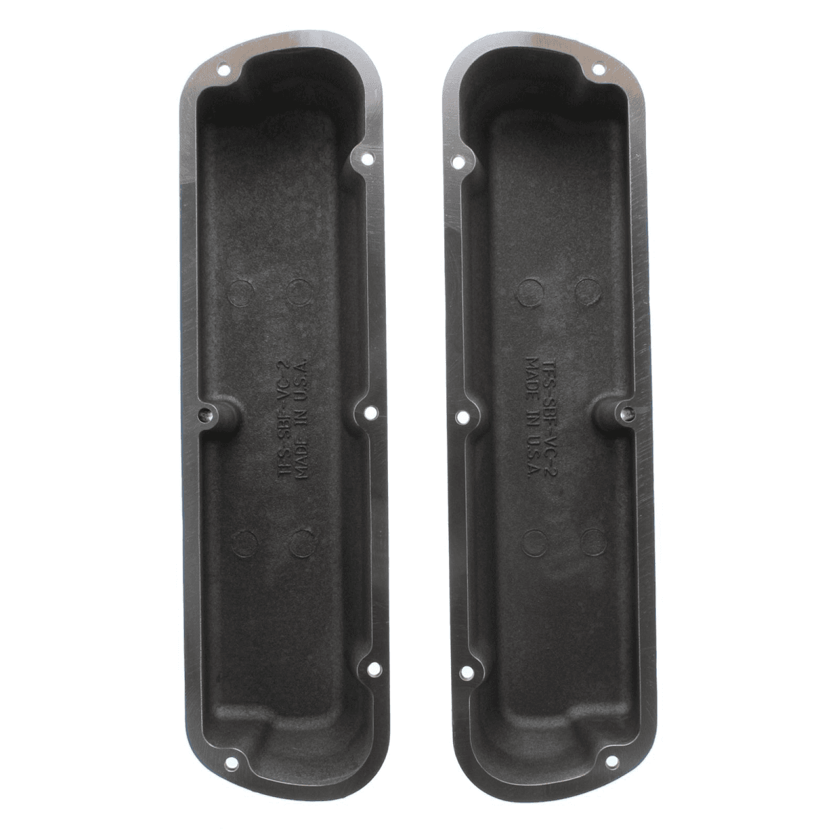 Notes: 3 7/8 in. overall height. These valve covers clear roller rocker arms and rocker stud girdles. Factory-style EFI intake manifolds require a spacer for valve cover clearance. Can be drilled to accept breathers. These will not fit on 1994-95 5.0L cars without major modifications to the Intake, throttle linkage, EGR valve and hood. The TFS-5140B801 will be a better choice for these cars.