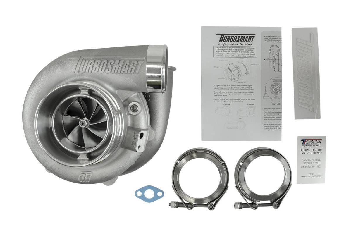 Every Turbosmart turbocharger comes standard with everything you need for installation, weld flanges, V-band clamps, gaskets, oil feed and drain fittings are included.