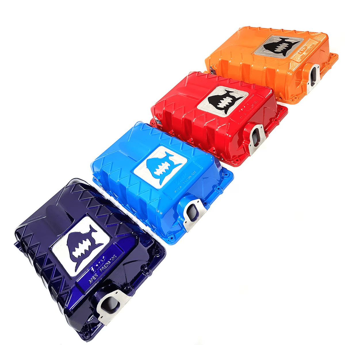 VMP’s patent-pending supercharger lid for the 2020+ GT500 / 2023+ Raptor R improves high-RPM airflow, eliminating stock blower restrictions. It works with the stock intercooler or VMP’s 81 mm Race Intercooler and helps reduce high intake air temps. The lid fits under the stock strut-tower brace, has a boost reference port, eight 1/8" NPT ports for nitrous or water-meth injection, and is 1.5 lbs lighter than stock. Part of the Apex Predator Line for Ford’s Predator engine, it features shark-inspired styling, is compatible with future larger supercharger upgrades, and is available in black or silver powdercoat.