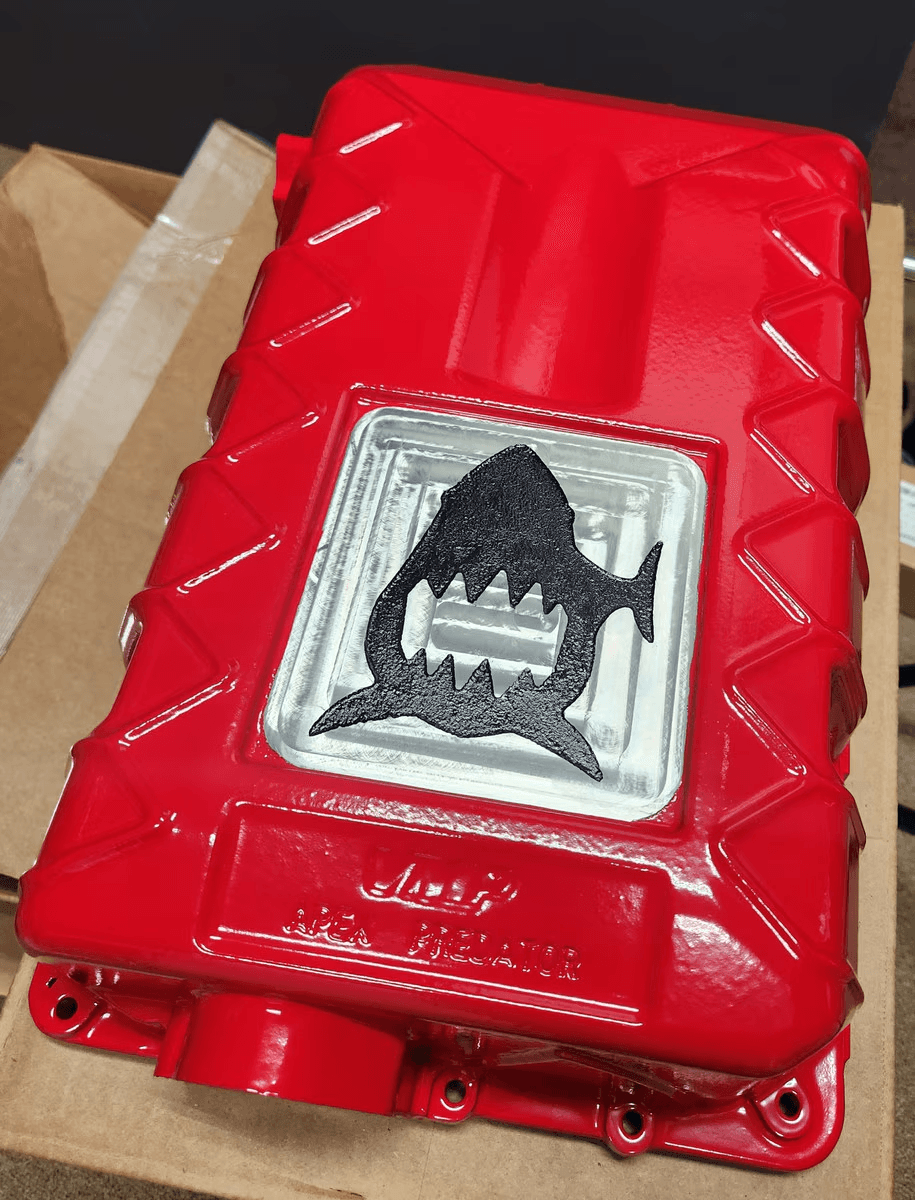 *Notice, For those that don't like the shark logo or are going for a "sleeper" look your original gt500 supercharger lid plaque will fit on top of the shark logo.