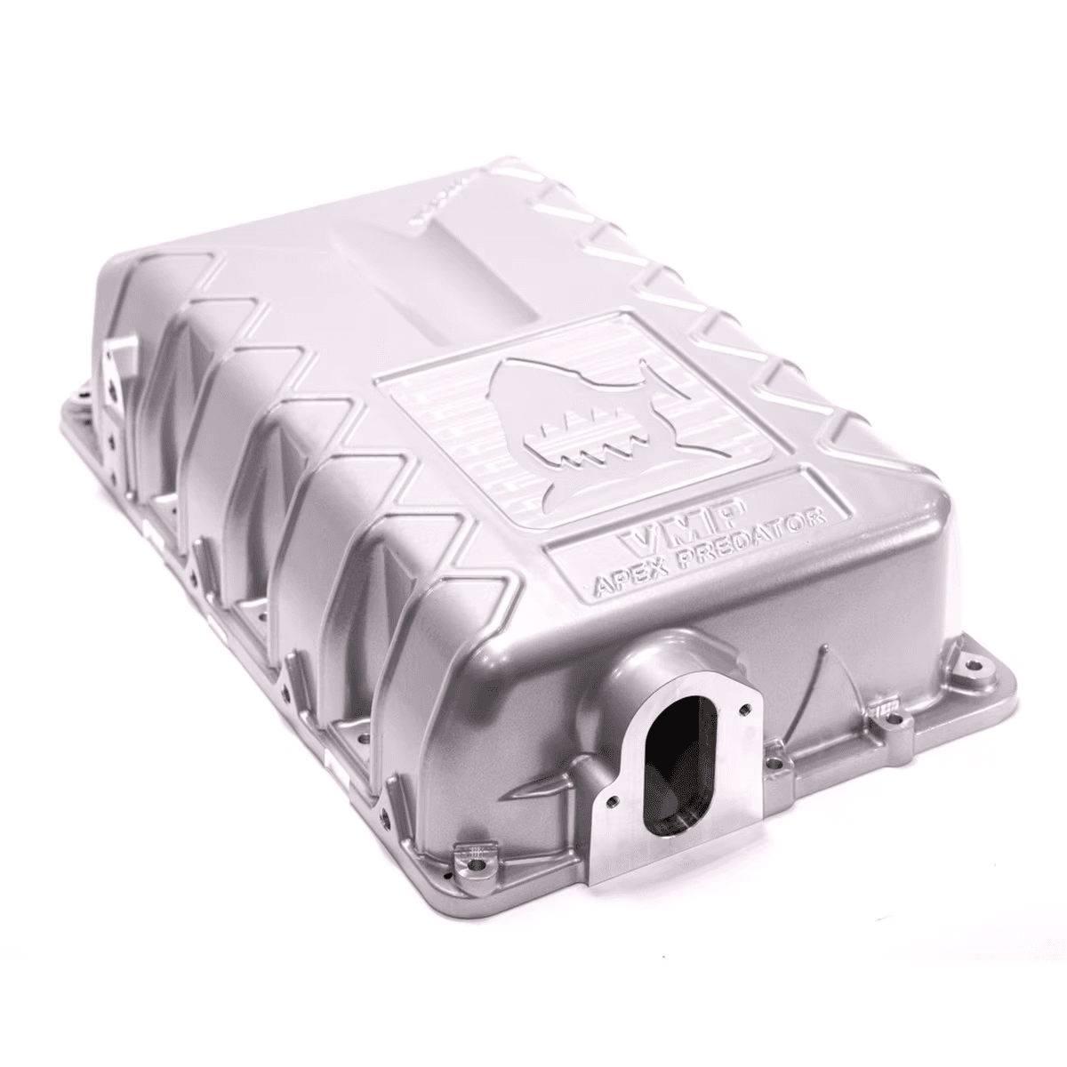 VMP’s patent-pending supercharger lid for the 2020+ GT500 / 2023+ Raptor R improves high-RPM airflow, eliminating stock blower restrictions. It works with the stock intercooler or VMP’s 81 mm Race Intercooler and helps reduce high intake air temps. The lid fits under the stock strut-tower brace, has a boost reference port, eight 1/8" NPT ports for nitrous or water-meth injection, and is 1.5 lbs lighter than stock. Part of the Apex Predator Line for Ford’s Predator engine, it features shark-inspired styling, is compatible with future larger supercharger upgrades, and is available in black or silver powdercoat.