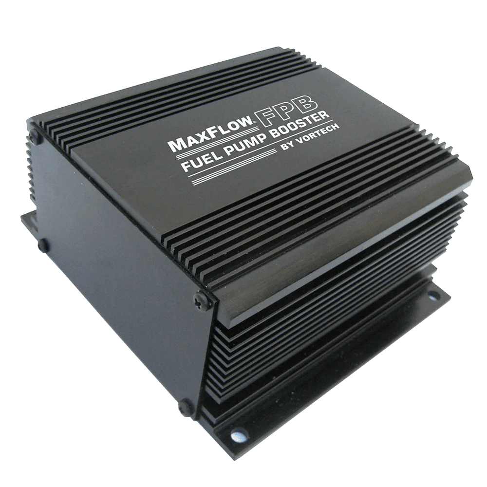 Maxflow Fuel Pump Booster, Pre-Programmed for various applications, including 2011-2014 5.0L Mustang GT, 2010-2012 Gen. 5 Camaro SS, and 2006-2010 Dodge/Chrysler/Jeep SRT8. Allows desired voltage output curve to fuel pump to be set. Installation wires and components included.
