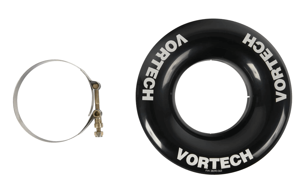 Designed for competition level drag racing, the large radiused contour of the bellmouth inlets promote uniform inlet flow, resulting in improved compressor performance and increased horsepower. The black anodized finish, laser etched logo artwork, and large inlet opening make for a stylish, yet solidly functional addition to any race setup.