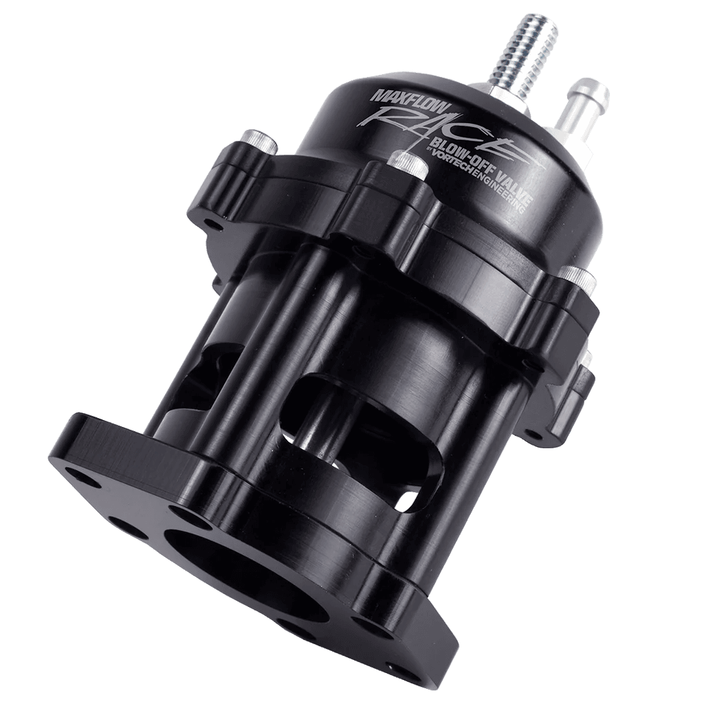 Our Maxflow Racing Blowoff Valve (BOV) flows 320 CFM @ 8PSIG and features a compact design that is ideal for applications with tight engine compartments. These valves are equally capable as the Race Bypass Valve, but the 360° discharge from the Race BOV gives them a distinctive and louder "blowoff" sound. These functional and stylish valves are available with Black or Clear Anodized finish, and will retrofit to standard HKS/Greddy style mounting pads while outperforming anything its size. Race Blowoff Valve are preset to open at 7-9 inches of vacuum and include a 3# spring. Installation gasket is included. Weld-on flange required for some applications, sold separately.