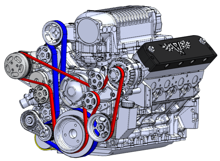 CAD designed and CNC machined billet aluminum brackets and pulleys for maximum rigidity