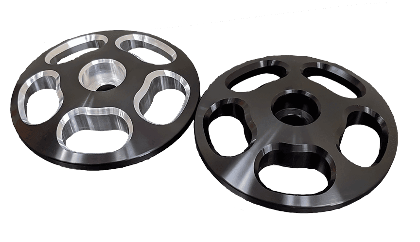 CAD designed and CNC machined billet aluminum brackets and pulleys for maximum rigidity