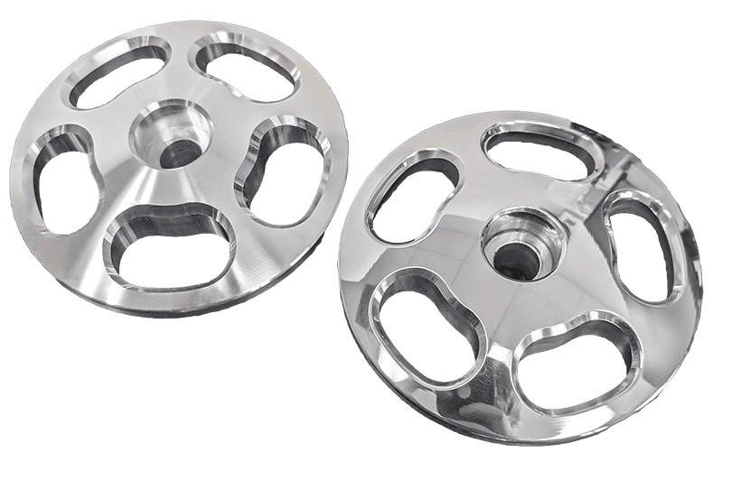 CAD designed and CNC machined billet aluminum brackets and pulleys for maximum rigidity