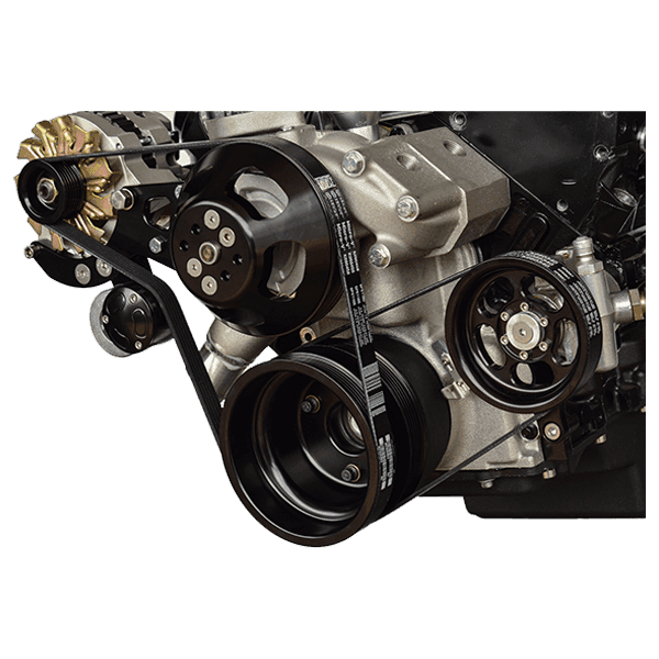 This is the Wegner 6 Rib Serpentine Drive System for LS Engines Using a Distributor with Power Steering, Alternator, and Water Pump (No Air Conditioning For AC Kit See PN# WAK010). The WAK011 LS Front Accessory Drive is Wegner's most popular kit for LS engines. Maximum pulley belt wrap for NO slip, extra idler pulley to give power steering complete wrap, Rigid design eliminates component flex, Heavy duty, high quality components, CAD designed & CNC machined brackets and pulleys.