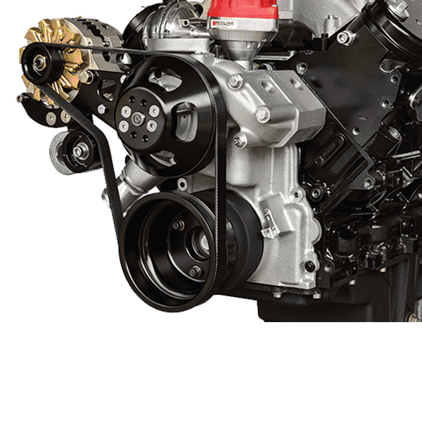 This is the Wegner 6 Rib Serpentine Drive System for LS Engines Using a Distributor with Alternator Only. The WAK011 LS Front Accessory Drive is Wegner's most popular kit for LS engines. Maximum pulley belt wrap for NO slip, extra idler pulley to give power steering complete wrap, Rigid design eliminates component flex, Heavy duty, high quality components, CAD designed & CNC machined brackets and pulleys.