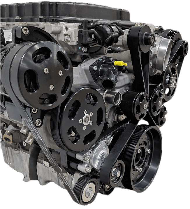 This is the Wegner 8 Rib Serpentine Drive System for LT4 6.2L Dry Sump Engine with OE Eaton LT4 Supercharger with Air Conditioning, Power Steering, & Alternator. This kit comes complete with CNC Machined billet aluminum brackets and pulleys, CAD designed for maximum rigidity to eliminate component flex in high horsepower applications, Complete belt wrap with an extra idler pulley for NO slip operation, An independent 8 rib belt drive for the supercharger, separate from all accessories, Also available for dry sump engines, OEM LT4 wet sump alignment, optional pulleys for dry sump engines and superchargers. The WAK060 LT4 Supercharger Front Accessory Drive System is our newest design for the GM LT4 crate engine. Expertly designed and tested in house by our experienced engineers, this kit will take your LT4 engine to peak performance.