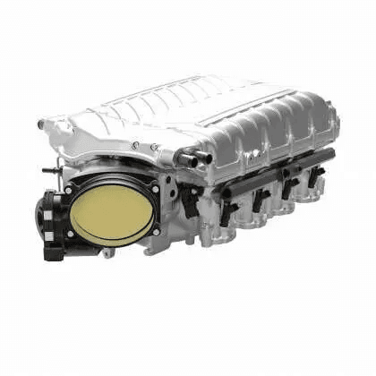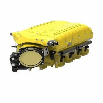 What does this mean? You get it all, in one package. Massive power gains with the biggest superchargers, biggest intercoolers, biggest intercooler systems, biggest air-inlet systems while providing robust belt systems and heavy-duty spring tensioners. The intake manifold is designed with high velocity in mind, while increasing plenum volume to lower pressure loss at high power applications.