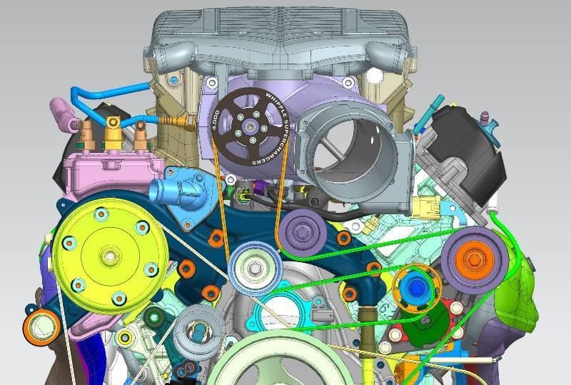 Front entry W185ax (3.0 liters) Whipple twin-screw supercharger that significantly outperforms competitions 2.3L and 2.65 twin screw systems