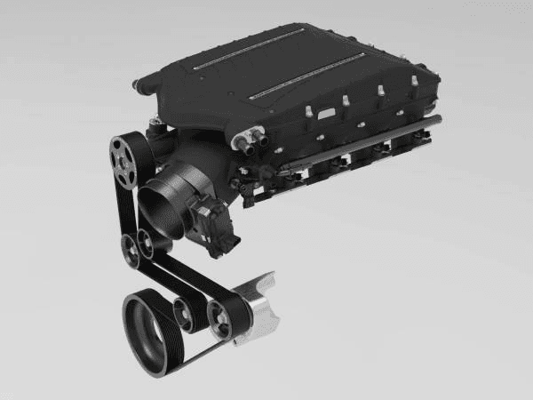 Front entry W185ax (3.0 liters) Whipple twin-screw supercharger that significantly outperforms competitions 2.3L and 2.65 twin screw systems