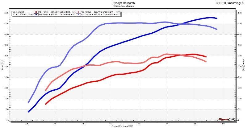 45% more power right out of the box! Over 160 rear wheel foot pounds of torque at 4000rpm. Over 160 rear wheel horsepower gain.*