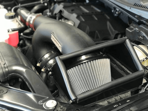 The Stage 1 system boast the all new CAD designed and CFD modeled cold air intake system. The oversized roto molded air tube features a high velocity shape to minimize intake losses while boosting performance. The Whipple intake system features the R2C black series hexagon high flow filter that outflows the stock panel type filter by an amazing 132%. The conical shaped filter features the velocity intake end for incredible airflow compared to closed end type filters.