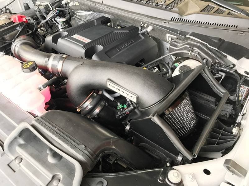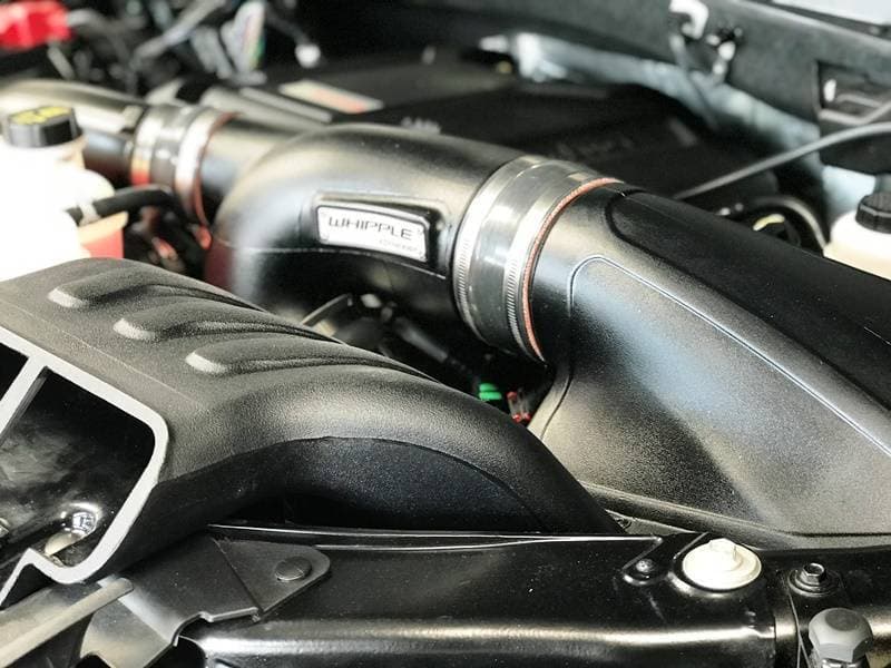 The Stage 1 system boast the all new CAD designed and CFD modeled cold air intake system. The oversized roto molded air tube features a high velocity shape to minimize intake losses while boosting performance. The Whipple intake system features the R2C black series hexagon high flow filter that outflows the stock panel type filter by an amazing 132%. The conical shaped filter features the velocity intake end for incredible airflow compared to closed end type filters.