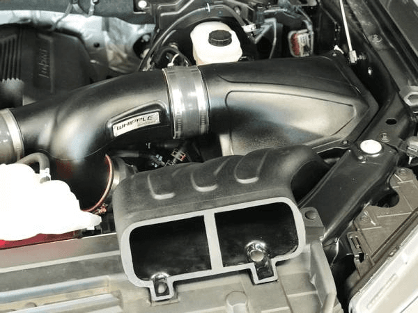 The Whipple high velocity air intake system boast the CAD driven, CFD modeled rotor molded plastic air intake that maximizes air speed while reducing inlet restrictions. The air system features the Black Series HEX filter with the velocity stack on the end. Each filter features extra wide pleats, giving the air filter the capacity to flow over 132% more air than a stock paper filter. The powder coated heat shield helps prevent power robbing heat from entering the intake track. The results, more horsepower and torque, increased throttle response and unique induction noise.