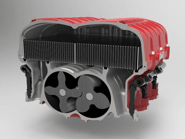 Gen 6 supercharger features new 3x4 rotor combination for increased RPM capacity, large diameter for increased airflow and small leak path, increased helix for optimal sealing