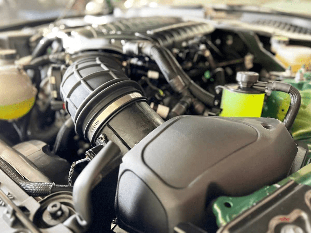 Whipple didn't just stop there, knowing that the Coyote motors love boost, Whipple’s team squeezed in not one, but three high density intercooler cores featuring variable thickness to maximize airflow and cooling capacity. The triple coolers allow for maximum surface area to promote equal distribution and increased cooling. Cooler air equals denser air which equals more power at each boost level while being safer on engine components.