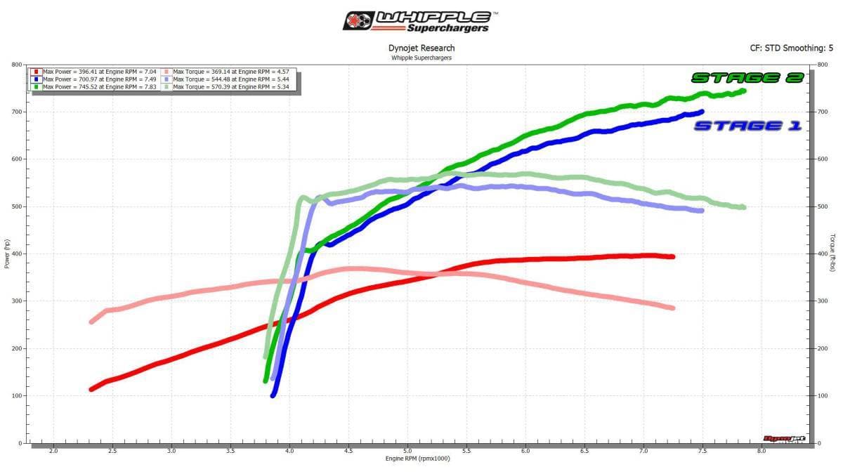 With years of OEM and racing experience, Whipple engineers have developed a unique PCM calibration that reconfigures all the necessary engine functions including fuel, spark, knock detection, torque management, transmission control and electronic throttle control. The vehicles PCM constantly monitors the engines torque output while monitoring many different parameters to keep the engine in it’s ideal parameters. If a parameter falls below specification, the PCM will lower boost and torque output until the problem can be cured. No other calibration in the field has such technology, giving the Whipple SC system unheralded performance and reliability. Each Whipple kit comes with unique software and a OBDII flash tool giving the customer the ability to flash/update whenever needed. Each customer also gets the new Flight Control Software, ability to adjust wheel/axle size, octane adjustment, crank/cam relearn and many other unique features.