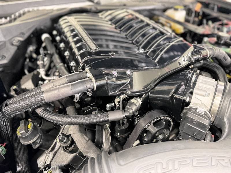 What does this mean? You get it all, in one package. Massive power gains with the biggest superchargers, biggest intercoolers, biggest intercooler systems, biggest air-inlet systems while providing robust belt systems and heavy-duty spring tensioners. The intake manifold is designed with high velocity in mind, while increasing plenum volume to lower pressure loss at high power applications.
