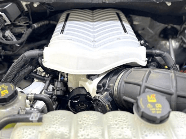Every Whipple upgrade system includes the advanced Whipple Tomahawk V2 flash tool, offering straightforward calibration delivery and enhanced data logging. The package also features a billet -8 fuel rail, 1/2-inch fuel line, billet adjustable idler plate and pulleys, an intercooler vent system, SC belt, and all necessary hardware for a seamless installation. No additional modifications are needed.