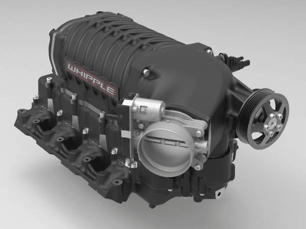 Front entry Gen 6 3.0L Whipple twin-screw supercharger that significantly outperforms competitions 1.9L and 2.3L roots-type systems
